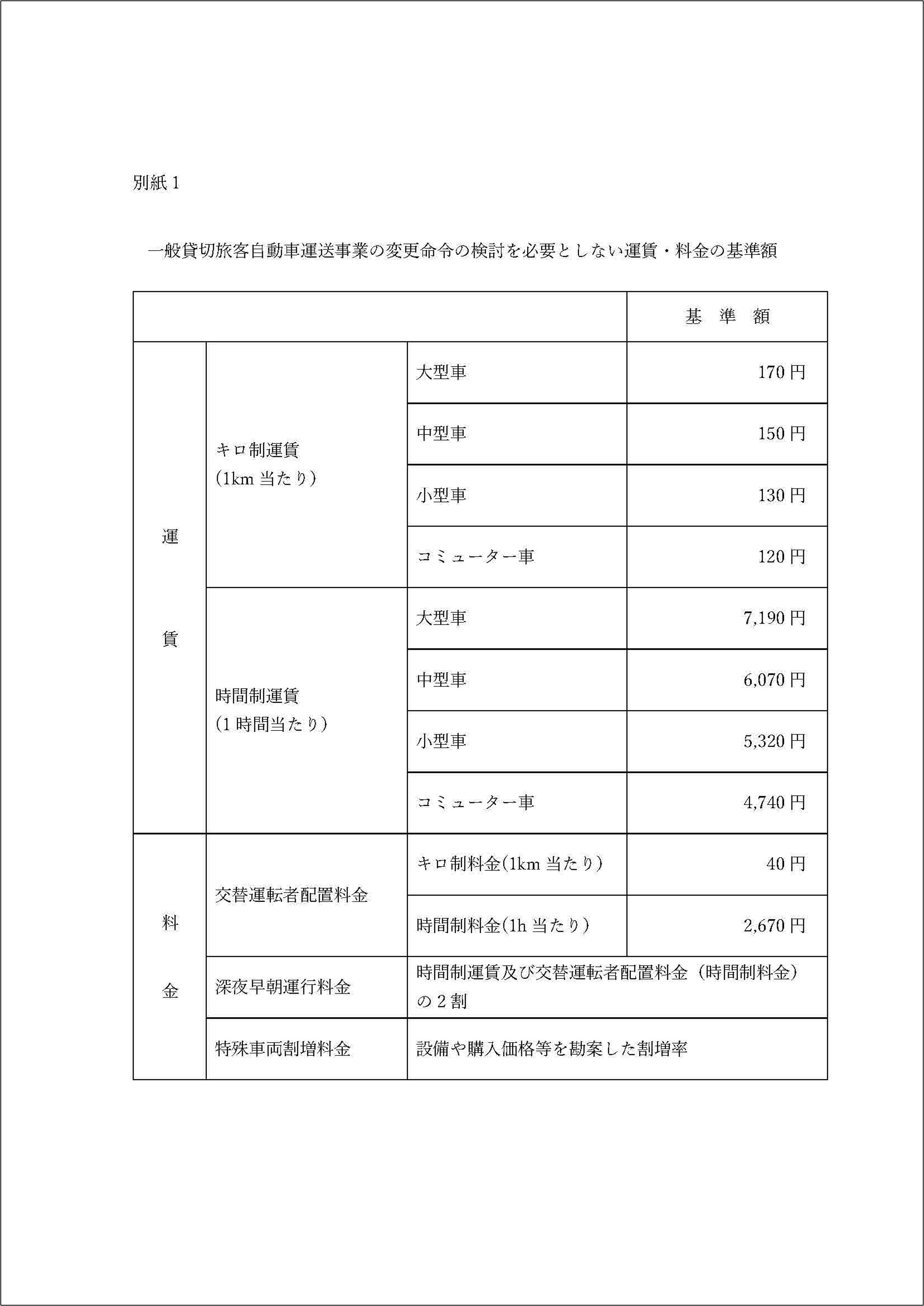 基本は、「時間運賃」「走行距離運賃」「深夜早朝割増」「交代要員加算」「特殊車両」を勘案した計算方式です。